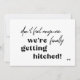 Simple black and white trendy bold typography wedding invitation with a funny "we're getting hitched" modern quote script.