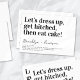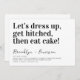 Invite friends and family to join you for your wedding celebrations with this funny wedding invitation. The text reads "Let's dress up, get hitched, then eat cake!"