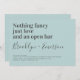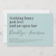 Invite friends and family to join you for your wedding celebrations with this funny wedding invitation. The text reads "Nothing fancy just love and an open bar"