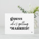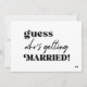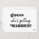 Simple black and white trendy bold typography wedding invitation with a funny "guess who's getting married" modern quote script.