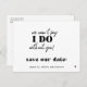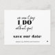 Simple black and white trendy bold typography wedding save the date postcard with a funny "we can't say I do without you" modern quote script.