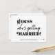 Simple black and white trendy bold typography wedding save the date postcard with a funny "guess who's getting married" modern quote script.