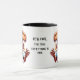 "IT'S FINE. I'm fine. EVERYTHING IS FINE" says this funny mug for the office or home. On either side of the stylised text is the watercolor image of an angry T-Rex Dinosaur that is barely hanging on, but still has his coffee cup!