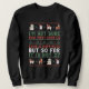 I don't know how many cookies equal happiness. Funny Ugly Christmas Sweater design for those who love jokes at the dinner table. Witty and sarcastic merchandise to wear during Christmas dinner, family gathering and New Year party. Perfect for this festive season and jolly holiday with a hint of witty sarcasm. Cool sweater-like stitch pattern design with sassy quotes and cute illustration of polar bear, penguin, deer and llama wearing Santa hat.