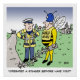 Funny UK Traffic Police Cartoon with Constable dressed as a wasp because he is about to operate a "stinger".
