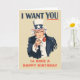 Uncle Sam wants you to have a happy birthday! This birthday card has the look of the classic Uncle Sam recruitment poster making it perfect for American history buffs, patriotic friends and more. Plus the both the red text on the front and the navy blue text on the inside of this card an be customised with your own greeting so that you can create the perfect personalised birthday card, or leave the text as is. The default text on the front reads: I WANT YOU TO HAVE A HAPPY BIRTHDAY and on the inside reads: NOT TO BE DRAMATIC BUT THE FATE OF NATION DEPENDS ON YOU HAVING A VERY HAPPY BIRTHDAY!