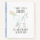 Notebook with a funny unicorn illustration and a rainbow in the background. The text says: I want to be a Unicorn so I can stab idiots with my head.