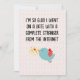 A unique Valentine's Day card for the special someone you met online. "I'm So Glad I Went On A Date With A Complete Stranger From The Internet" says it all with a touch of humour and a whole lot of love.