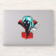 Vampire girl sticker with a digital illustration of a funny dark skinned undead character with glowing eyes, blue hair, fans and vibrant red cape.
