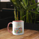 This "Tomorrow needs more vegans" mug features a quote with flowers and sun.