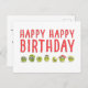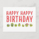 This funny veggie birthday postcard features a cheerful bunch of Brussels sprouts with googly eyes and bold red text that says “HAPPY HAPPY BIRTHDAY.” It’s a playful and quirky way to celebrate — perfect for veggie lovers, plant-based friends, or anyone who enjoys a good laugh. The back side includes a friendly editable message and a little veggie row for extra charm. Enjoy!