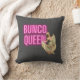 Super fun pillow design for ladies who love to Bunco! Vintage dancing woman in crown photo cutout along with pink neon "Bunco Queen" text on charcoal grey background