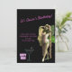Fun & funky invite for adults features neon cocktail and "happy hour" with vintage butterfly costumed dancer and pink customizable text on black background.