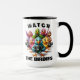 Get a chuckle with this mug, which features AI-generated artwork of colourful songbirds enthusiastically toting cameras, asking an unseen subject to "work the camera", and accompanied by the caption, "Watch the Birdies." Customise with a meme of your own, or use as is! Reverse shows identical design. A great gift idea for shutterbugs, bird nerds, and nature lovers!