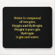 Yellow text on a black background delivers a humourous twist on the composition of water, replacing hydrogen and oxygen with "Hydrogin" and "Oxygin." This playful pun suggests that Oxygin is pure gin, and Hydrogin is gin and water.