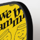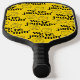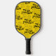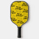 Get a chuckle at the court with this whimsical pickleball paddle, which features a repeating pattern of the pun "we be jammin'" bracketed by cute smiling miniature canning jars merrily dancing away on a bright yellow background. Reverse shows identical design.