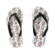 The flip flops arrived in a most colorful package which also had them double bagged in a black drawstring pouch which makes them great for gifting. They are a quality product with plenty of durability. The printing is vivid and true to that pictured on the web. Great look!