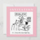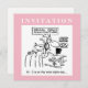 This wedding invitation shows a cartoon of a dressmaker who is "on the train"