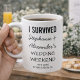 Add a dose of humour to your wedding weekend with this Funny Wedding Merch Custom Wedding Favour Keepsake Coffee Mug, designed to make guests smile long after the celebration ends. Featuring the playful phrase “I Survived the Wedding Weekend,” this mug is the perfect blend of witty, personal, and practical—making it a standout addition to your wedding merch station.