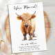 Introducing our charming and modern moving announcement featuring a baby highland cow in a beautiful watercolor design. This cute and adorable card is perfect for those who want to share their new address with friends and family in a unique and creative way.