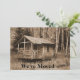 Are you in the process of a move? Here's a funny and cute new address announcement that should attract some attention! On the front of the postcard is a sepia-style, cosy cabin in the woods. Your recipients will wonder if you're serious! On the other side, an easy to follow template with stylish text where you add your new address and the friendly reminder to keep in touch.