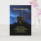 Change of address greeting card shows a black haunted house with windows lit on a stormy night with thunderstorm and lightning. Shows "We've Moved" at the top, contact information at the bottom, and "We look forward to your visit" inside. All text is customizable to personalize it to your needs.