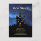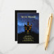Enclosure card shows a black haunted house with windows lit on a stormy night with thunderstorm and lightning. Shows "We've Moved" at the top and contact information at the bottom, in yellow. All text is customisable so you can personalise it to suit your needs.