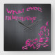 WhatEver clock, Dark Brushed Metal look background with HOT PINK highlighted numbers all mixed up - silly funny clock for those who are always late anyways. NOTE: No real metal, glitter, fabric,leather,lace,or other textiles used on this product they are artistically created to appear real.
