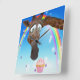 Funny Whimsical Giraffe, Cupcake & Rainbow Square Wall Clock