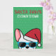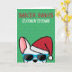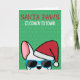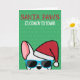 If you know someone who loves french bulldogs and has a good sense of humour, this funny frenchie Christmas card is ideal for sending to them during the festive holiday. The design features a cartoon-style illustration of a white coloured french bulldog wearing a red Santa hat and sunglasses with the wording “Santa Paws is comin’ to town" written on the front. Wording on the inside reads "Wishing you a pawsome Christmas” but can be changed to your liking. This design is also available with different coloured french bulldogs.