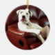 funny white pit bull dog on the couch ceramic ornament