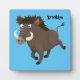 Funny wild boar razorback cartoon illustration plaque