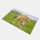 Two cute dun coloured Konik foals playing, legs hang around the neck, they are part of a free-range herd of the Polish primitive horse breed live in nature reserve De Rug, Meuse, Roosteren, Netherlands. Photo taken by Katho Menden. This doormat welcome is a gift idea for horse lovers.