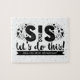 A funny and original bridesmaid or maid of honour proposal jigsaw puzzle "Sis let's do this! Will you be my bridesmaid?" Note! You can change the white background colour! Choose any colour from the palette to match your wedding colour - "click to customise it further" link.