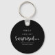 Surprise your best friends with a funny yet elegant bridesmaid proposal using this cute white script calligraphy keychain. Designed with a minimalist, boho-chic, and vintage-inspired aesthetic, this "Now Act Surprised Like You Had No Idea This Was Coming" bridesmaid proposal keychain is the perfect way to pop the question in style. With its classic, romantic, and modern design, this keepsake is ideal for fall, winter, spring, or summer weddings. Whether your bridal theme is shabby chic, glamourous, fairytale, or minimalist, this luxury, formal yet funny bridesmaid gift adds a unique and stylish touch to your proposal. Perfect for bohemian, elegant, and classy bridal showers, this white script on a black keychain is a timeless memento your bridesmaids will cherish.