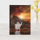 Halloween is so fun and this is a fun Halloween greeting card. A cute ghost, with a cool rustic barn and autumn colour foliage. He holds up his glass of wine, as in a toast. A funny message inside. Cheers to Halloween!