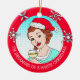Funny Wine Humour Retro Lady White Christmas Ceramic Ornament