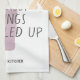 Funny wine lover kitchen towel with stylish rosé bottle illustration reading "It's not good to keep things bottled up" with your custom name or text below in a modern, trendy typography design.
