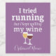 A little drinking humour that you can pass on to your wine loving girlfriends. Make them laugh with this humourous gag gift or white elephant. I tried running, but I kept spilling my wine.