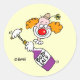 Funny Wine Tasting Party Invite Envelope Seal featuring a clown with a big red nose, orange hair and a little hat with a flower opening a bottle of his favourite with an oldfashioned corkscrew, is for a host or hostess to use when they send out those invitations to all their fellow Oenophiles. Your friends who share your interest will get a kick out of these. How many other uses for these clever humourous stickers can you come up with?