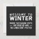 Funny "Welcome to winter - where the parking spots are made up and the lanes don't matter" winter driving design in simple all white sans serif font. This simple yet eye-catching driving in the winter humorous saying makes a nice gift for who lives where it snows a lot and understands the humor of driving during the winter season.