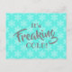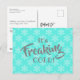 Send a funny card for the holidays or for any occasion during the winter months with a custom post card design featuring a snowy pattern and modern brush script text "It's Freaking Cold!". The back of the post card has a sample message that you can edit or delete for hand writing your card.
