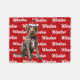 Your dog deserves a blanket of their own, especially with their name and breed on it. Fun throw to warm the season by the fireside or tossed over the sofa. A German Wirehaired Pointer dog in Santa hat, with the dog's name patterned on a red background. TIP: Choose Personalise to change the background colour to one which matches your decor if you like.