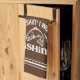 Stylish and fun, these towels are the perfect accessory to anyone's kitchen or garage. The design features a brown background with white typography that says "wishin' I was fishin'" which also features white fish and fish hooks along with three stripes at the bottom. Great for dads, grandpas, uncles, brothers, and any other person or would rather be fishing.