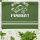 Stylish and fun, these towels are the perfect accessory to anyone's kitchen or garage. The design features a green background with white typography that says "wishin' I was fishin'" which also features white fish and fish hooks along with three stripes at the bottom. Great for dads, grandpas, uncles, brothers, and any other person or would rather be fishing.