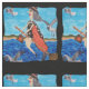 Funny Witch Bathing Suit Flying over Beach Cat Fabric