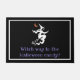 Cute and funny "Witch Way" Halloween doormat. Witch and orange moon graphics. Purple text for the saying is "Witch way to the Halloween candy?" Fun and funny!