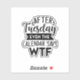 Add a dose of humour to your daily routine with our Funny Witty Sarcastic Sayings Sticker, featuring the cheeky phrase "After Tuesday Even The Calendar Says WTF". This sticker is the perfect way to inject some lighthearted fun into your life and will surely bring a smile to your face every time you see it. Don't miss out on the opportunity to showcase your unique sense of humour - grab yours today!