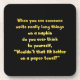 Yellow text humorously questions writing long notes on napkins, suggesting paper towels might be more suitable. The message is set against a plain black background, making the text stand out.