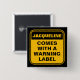 Funny yellow comes with warning label personalised 15 cm square badge